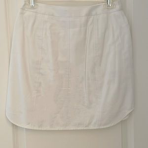 Zip up front, flattering rounded edges, white, size xs, stretchy denim like material. No flaws, great condition