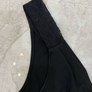Worn once!! This black mini dress is perfect closet staple. Beautiful lace detailing at the shoulder.
