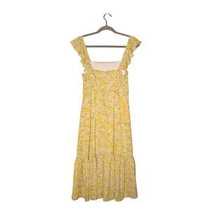 BCBGENERATION $110 Yellow Floral Ruffle Tiered Midi Dress Cottagecore XS