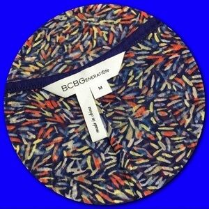 BCBGeneration 💕Abstract Print Sheer Tank Top. Small breast pocket, shirt tail cut and loose fit. Total comfort multi-colored top. Measurements taken lying flat with no stretch. Bust = 18" armpit to armpit. Length = 27 1/2" shoulder to hem. Size M. EUC.💕