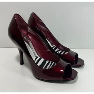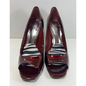 BCBGENERATION Ariel Ruby Red Patent Leather Open Toe Stiletto Heels Shoes Womens 7.5