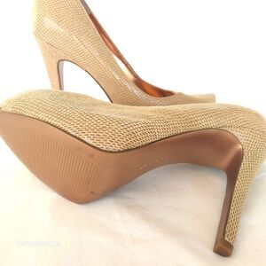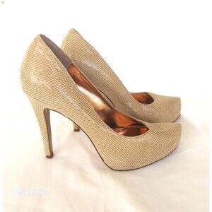 BCBGENERATION BG PARADE SNAKESKIN PLATFORM PUMPS Size B Brand New Tan Color