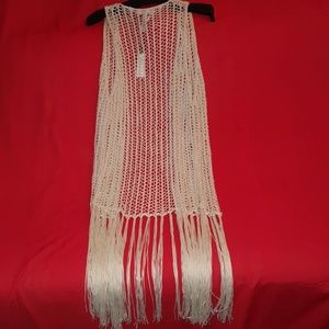 Ladies Authentic BCBGENERATION chic woven knit fringe vest, one size, open front, natural color, acrylic, hand wash, approx. 50" from shoulder to hem, swingy fringe. Brand new with tags in mint condition and original packaging.