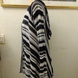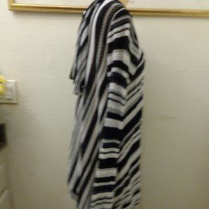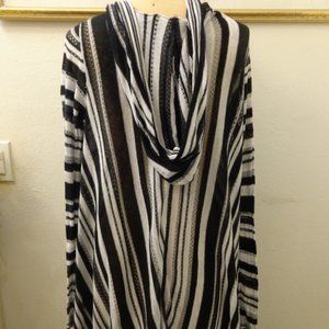 BCBGENERATION Black and White Striped Cardi-Wrap Cardigan. Has been worn before in fair condition! Has two holes. Cardi-Wrap has a hood. Made out of 100% Cotton.