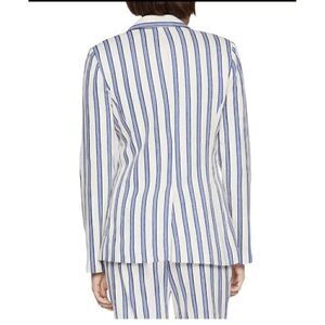 BCBGENERATION Cotton Blend White/Blue Striped 1-Button Blazer M