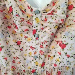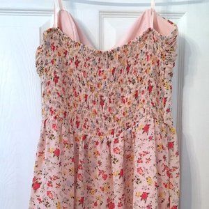 BCBGENERATION PINK YELLOW FLORAL STRAPLESS MINI DRESS LARGE