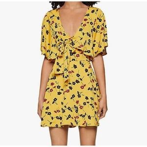 BCBGENERATION | FLORAL TIE FRONT OPEN BACK MUSTARD DRESS WOMEN'S SIZE S…