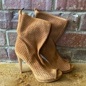 BCBGENERATION Gretchen Brown suede high Ankle perforated peep toe booties