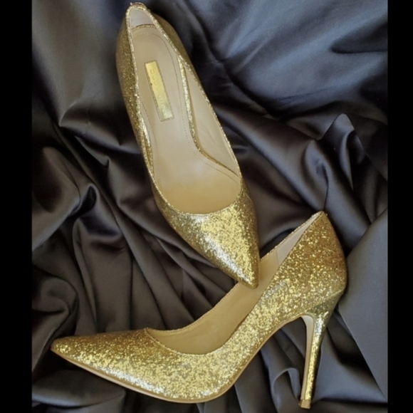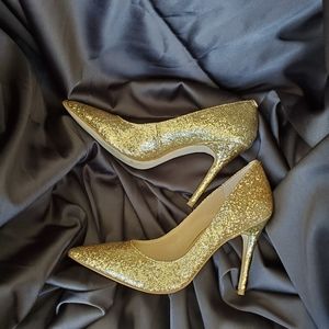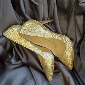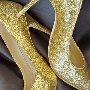 Gold glittery heels.
