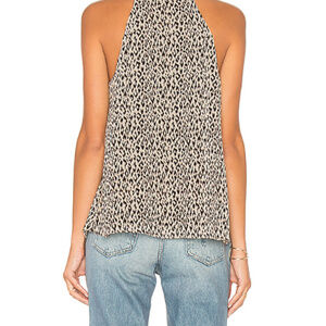 Cute lightweight sleeveless leopard pattern blouse with black tie around neck. Perfect for under a blazer at work or casual chic weekend wear. Great top for spring, summer, or fall.