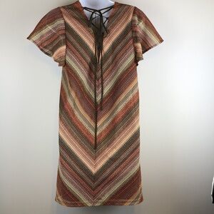 BCBGENERATION Mesh Lace Up Back Flutter Sleeve V-Neck Relaxed Fit Comfy A-Line Mini Dress Size S Girly Feminine Easy to Wear Dress Up Date Night Concert Brunch Fall Spring Summer Neutral Flattering