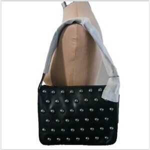BCBGENERATION Novel Studded Shoulder Hobo HandBag Fx. Leather Black