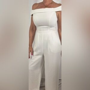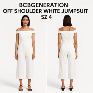 BCBGENERATION OFF SHOULDER WHITE JUMPSUIT SZ 4