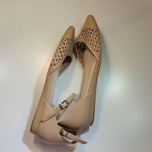 BCBGENERATION PL-HUNNY-X POINTED TOE BACK &ANKLE STRAP WOMEN"S FLAT SHOE SIZE 8/38 COLOR CREAM MADE WITH MAN MADE UPPER LINING LEATHER SOLE THIS ITEM IS PRE-OWNED EXCELLENT CONDITION WITH ONLY LIGHT SIGNS OF WEAR IF ANY CHECK THE PICTURES (TINY LITTLE DAMAGE IN ONE OF THE SIDE OF THE SHOE CHECK THE PICTURES)
