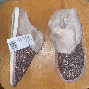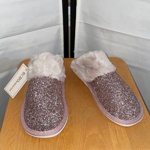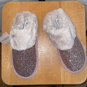 BCBGENERATION Pink Sequin Faux Fur Slippers