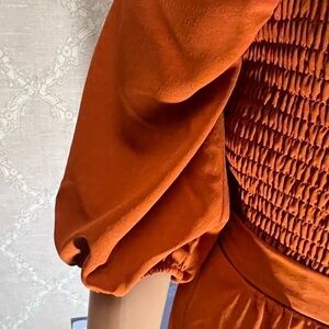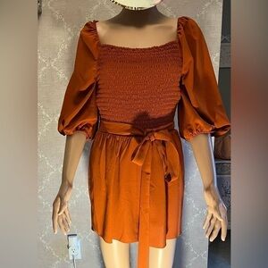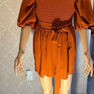BCBGENERATION SMOCKED FRONT PUFF ELBOW SLEEVE ROMPER Size M Brand New