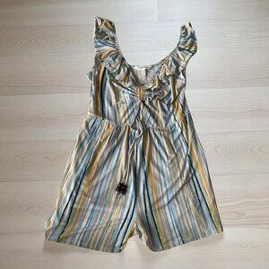 BCBGENERATION Striped Keyhole Ruffle Romper Size Medium