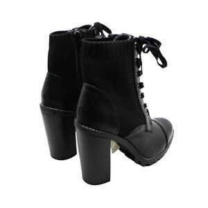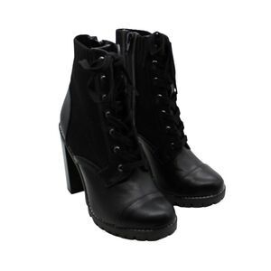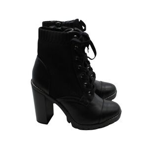 BCBGENERATION Womens Black Stretch Cushioned Lug Sole Lace Pilas Cap Toe Block Heel Zip-up Booties 7.5 M