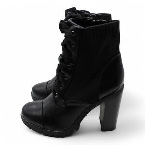 BCBGENERATION Womens Black Stretch Cushioned Lug Sole Lace Pilas Cap Toe Block Heel Zip-up Booties