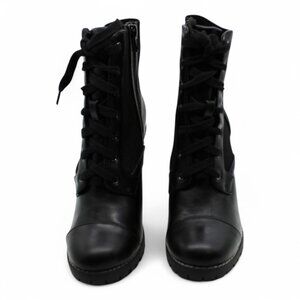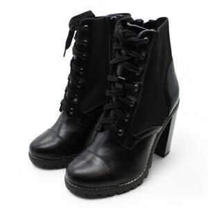 BCBGENERATION Womens Black Stretch Cushioned Lug Sole Lace Pilas Cap Toe Block Heel Zip-up Booties
