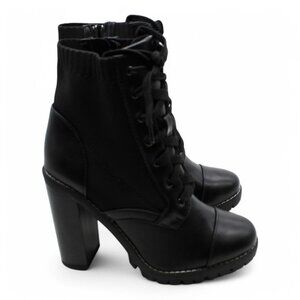 BCBGENERATION Womens Black Stretch Cushioned Lug Sole Lace Pilas Cap Toe Block Heel Zip-up Booties
