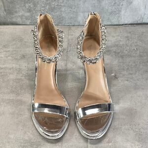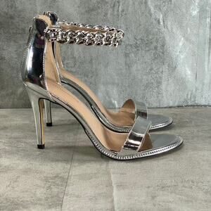BCBGENERATION Women's Silver Jadia Chain Detail Ankle Strap Dress Sandals SZ 9