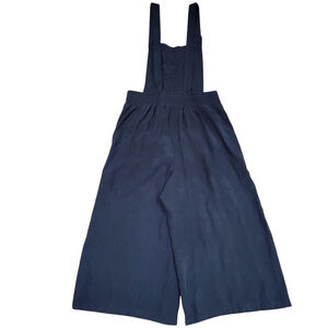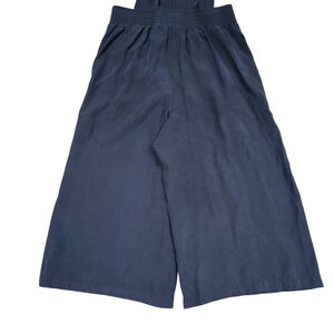 This is a BCBGENERATION women's sleeveless jumpsuit in size small. It features a halter neckline, wide-leg style, and is made of polyester and modal. The jumpsuit is solid black in color and includes adjustable straps and pockets. It is a one-piece outfit with a machine washable care instruction, suitable for parties, casual wear, and seasons like summer, fall, and spring.