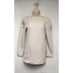 BCBGENERATION Wool Blend Ivory Cable Ruffle Shoulder Tunic Sweater XS