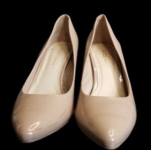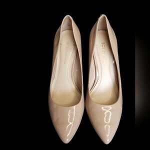 BCBGeneration cream pointed toe stiletto heels tan cream "nude" with gold detail womans size 7.5 see pics for exact condition