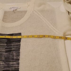 BCBGENERATION ivory oversized graphic long sleeve sweater, semi sheer, scoop neck, size Med/Large. Excellent pre loved condition, measurements in pics, smoke free home.