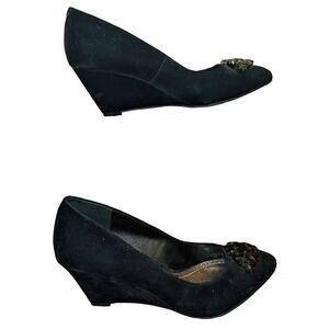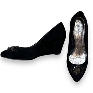 BCBGENERATION Jewel Embellished Wedge Velvet Pumps EUC