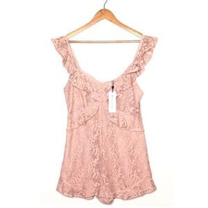 BCBGENERATION Pink Lace Ruffle Romper Size 6 NWT