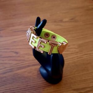 Special Features: Goldtone SWEET, big Heart, Vibrant Neon Green, Goldtone accents, 2 snaps for a perfect fit!