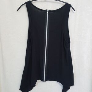 Cute loose fit black tank with silver full zipper in back.34" bust and 20" long