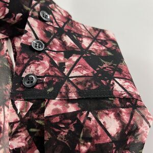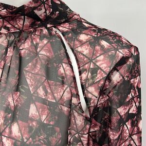 BCBGENERATION sheer triangle print open back blouse