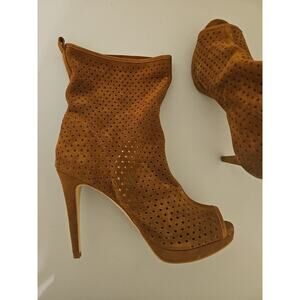 BCBGEneration Women's Leather Peep-Toe Heels Booties Size 9 M Brown Suede