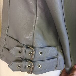 BCBG Faux Leather Front Zip Jacket Gray S