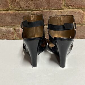 BCBG Generation Black Leather Open Toe Wedge Size 6.5