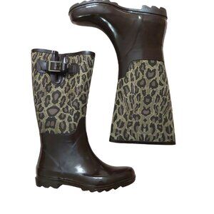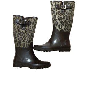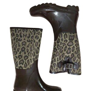 BCBGGeneration Madison Leopard Rubber Rain Boots Retail $395