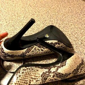 BCBG Generation Stilettos Snake Skins 6 1/2 .. Black, Gray, Sliver, off White