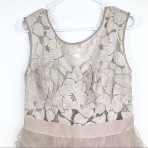 BCBG Generation Tan Blush Ruffle Tulle and Lace Dress