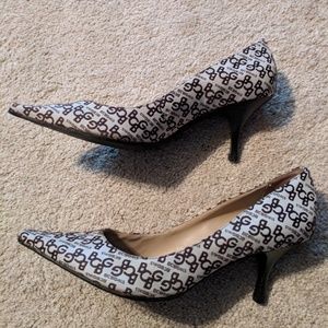 BCBGGirls Logo Brown Tan Short Pointed Heels 7.5