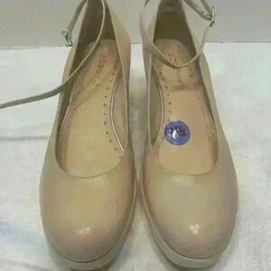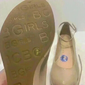 BCBGIRLS pale, blush, pink wedge heel with ankle strap size 7 platform maryjane, light pink