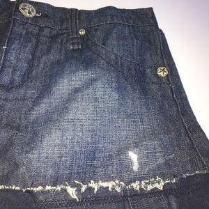 FINAL PRICE!! NO OFFERS!! Rock this skirt at your favorite Country Western dance party! NWT BCBGIrls Denim Eyelet Distressed Pleated Skirt. Size 27. Cotton/Ramie Blend.
