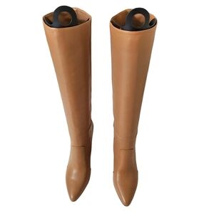 Discription:An absolutely fabulous integrated wedge knee high boots with stylish bronze metal heel guard plate that can be worn to any occasion.A definite statement piece made from soft leather.
