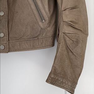 BCBGMAXAZARIA leather Snap Collar Moto Bomber Jacket Small EUC