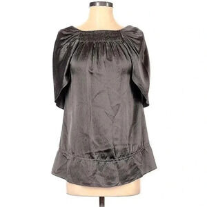 BCBGMAXAZRIA 100% Silk Draped Silk Blouse Size XS Gray Cape Sleeve Ruched