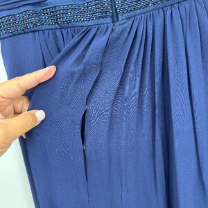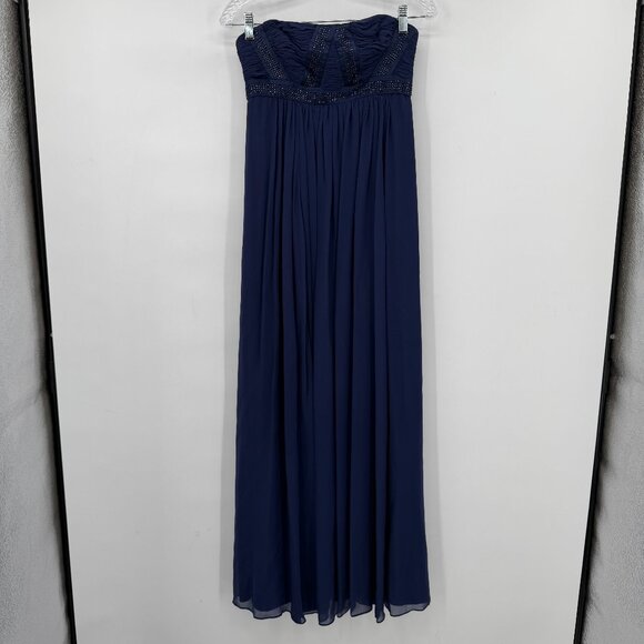 BCBGMAXAZRIA 100% Silk Strapless Sapphire Blue Embellished Gown Women’s Size 4