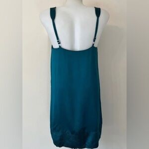 BCBGMAXAZRIA 100%silk slip dress in dark teal color, size S