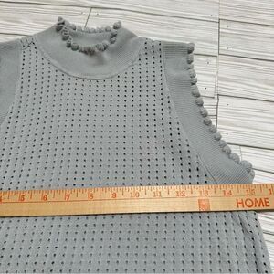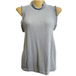 BCBGMAXAZRIA AXEL RUFFLE TRIM SLEEVELESS OPEN KNIT TOP BLOUSE LIGHT GRAY MEDIUM